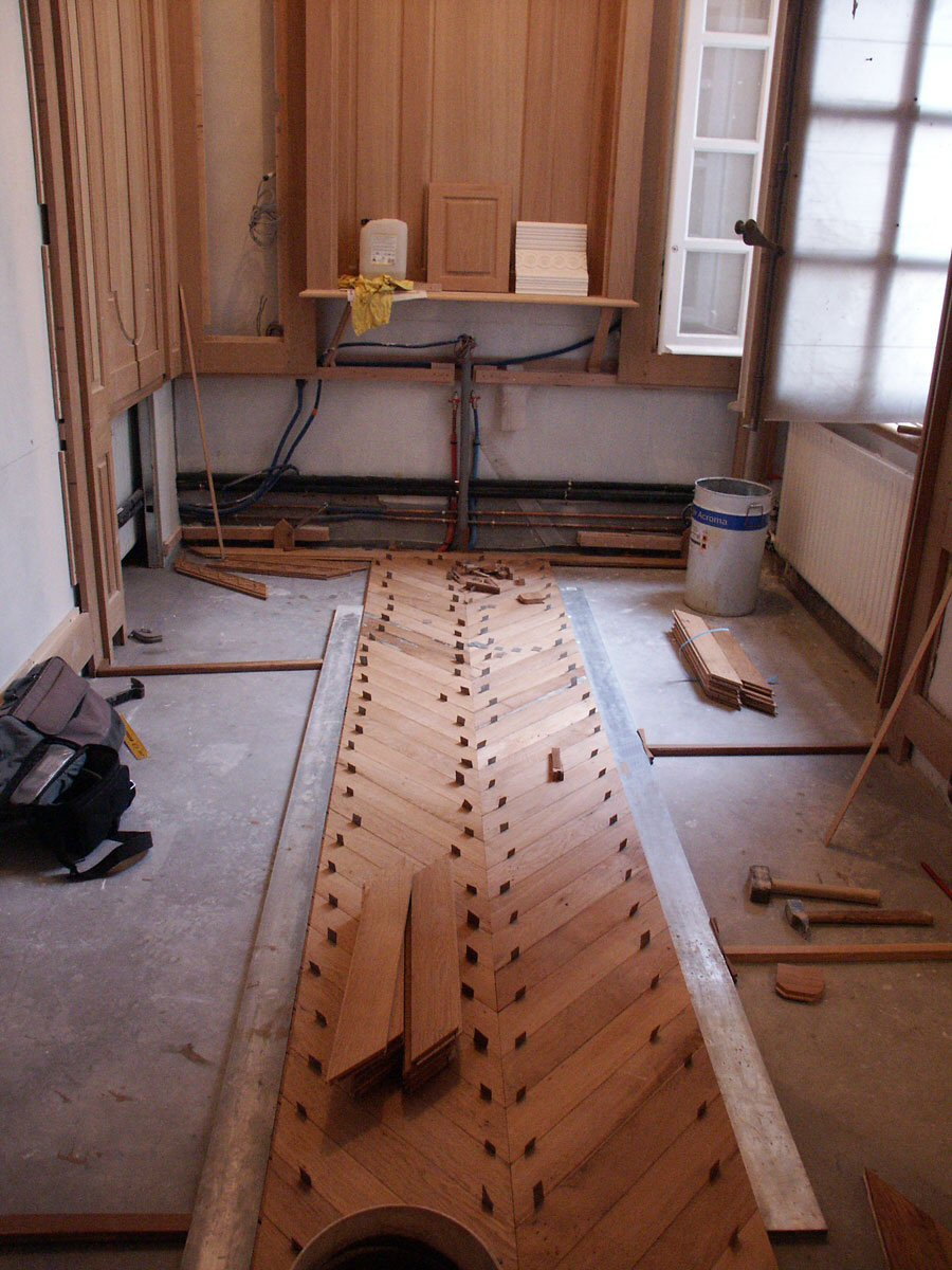 A. Wood flooring should be one of the last jobs completed on the construction project. Limit foot traffic on finished wood flooring.